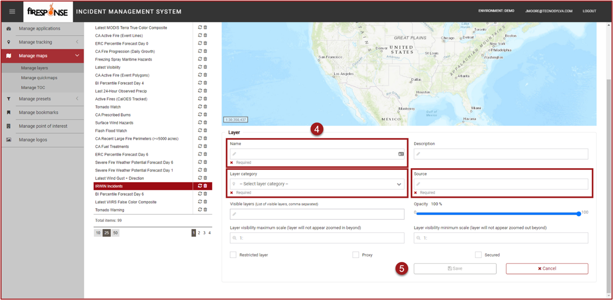 Note: The map layer will not be visible on any platform until the map layer is configured in the Manage TOC tab.
