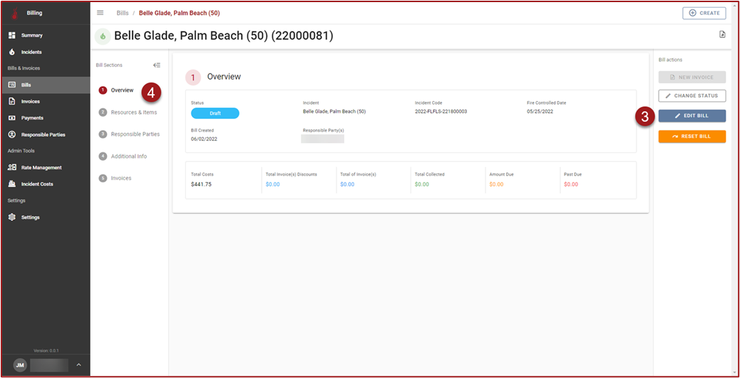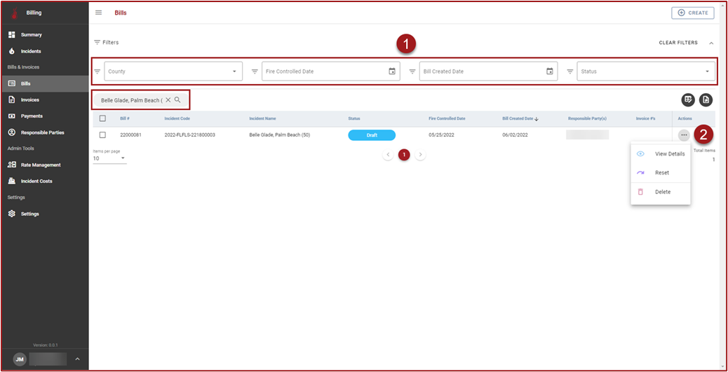 On the Bills grid use the filters and/or perform a wildcard search for the Incident Name to find the Bill.
